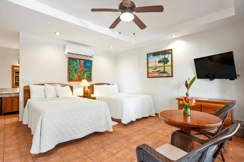 "Very comfortable, large suite. View of ocean. Air conditioned - nice sitting area. Private balcony. Kitchen reasonably well-equipped, complementary coffee. Hotel is in a great central location near grocery stores, restaurants etc. Golf cart parking in front."