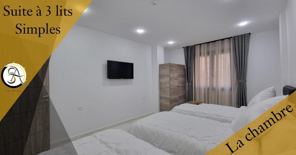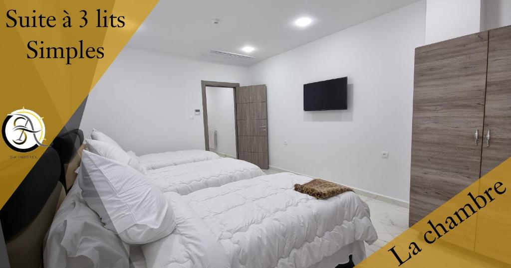 Hostel SA Bab Ezzouar har perspektiv til byen, gratis wi-fi og gratis privat bilparkering og ligger i Le Lido, 2,4 km fra Plage La Sirène Strand. Alle enheder har et fuldt udstyret køkken med spisebord, fladskærms-tv med satellitkanaler og et privat badeværelse med bidet, gratis toiletartikler og en hårtørrer. Der er ligeså et køleskab, en mikrobølgeovn og kogeplader samt kaffemaskine. Houari Boumediene Lufthavn ligger 5 km væk.