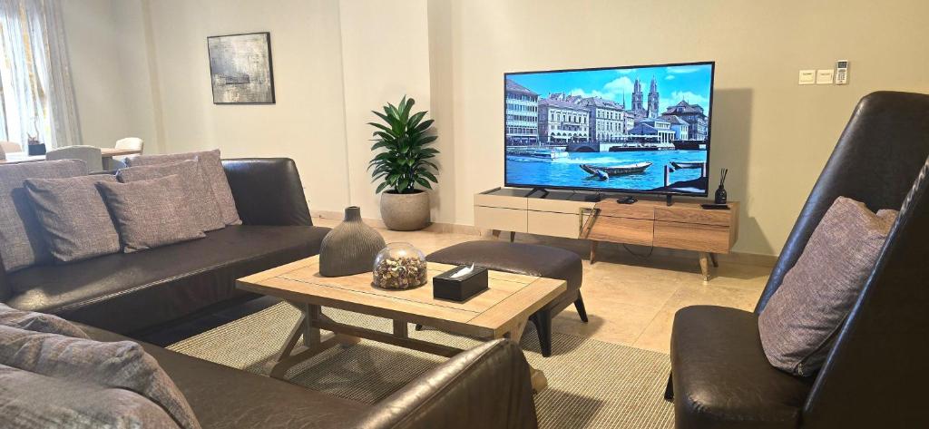 "Location is great, loads of restaurants within walking distance. The 3 bedroom apartment is very spacious and clean and there is plenty of room for a large group. In addition the little extras like Netflix was a bonus and kept my teens entertained during late nights as well as the bathroom slippers, towels provided. There is no reception however the housekeeper Mubarak was always available to assist with any issues."