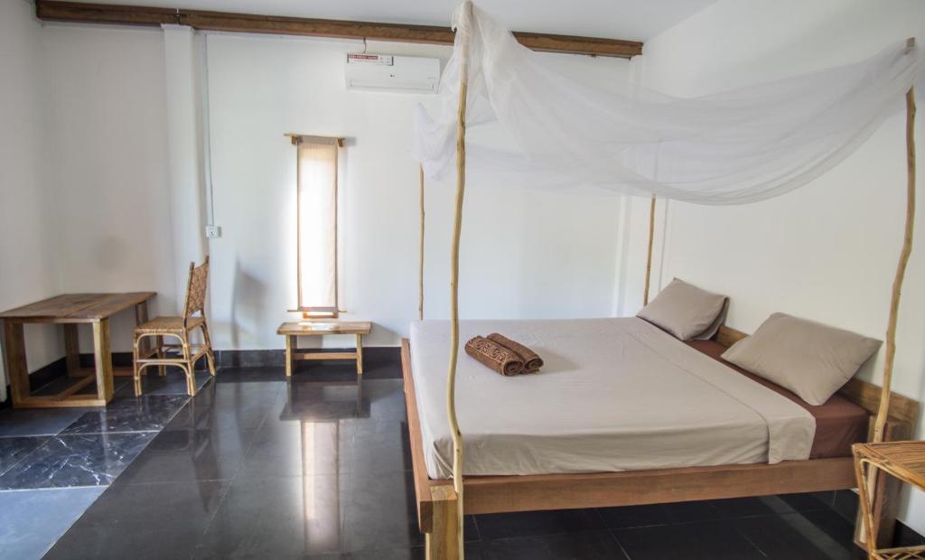 "This is a lovely little place in a quiet area. I stayed in one of the bungalows which was basic but spacious and clean. It was surrounded my plants/vegetation so felt like I was in a little oasis. It had a fan, air-conditioning and a mosquito net. Owners were very welcoming and helpful. They were happy to make me a coffee whenever I needed one and provided bottled water whenever wanted/needed. Restaurants are available within walking distance and plenty of food delivery options also. Beach is about a 20 minute walk."