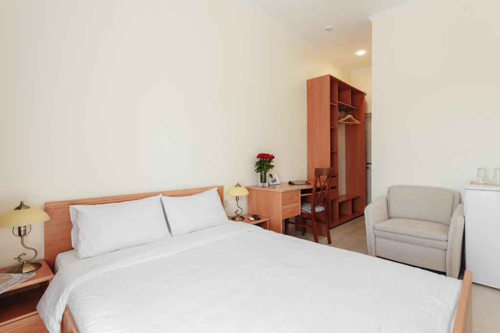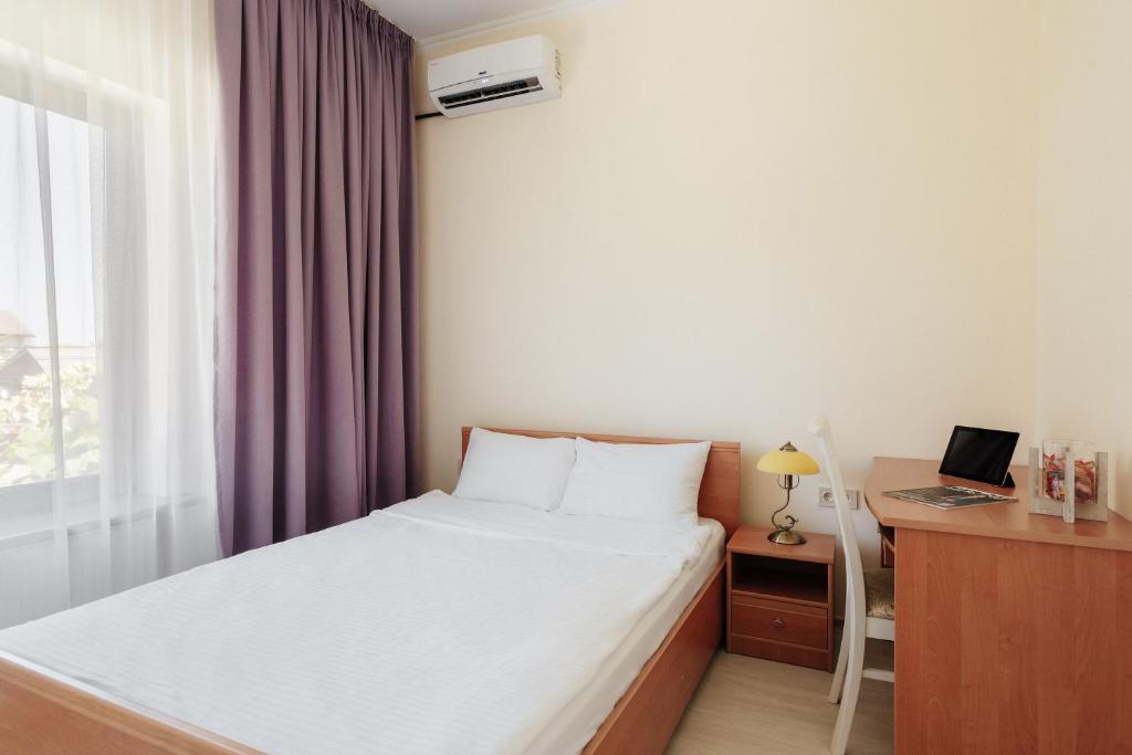 "Уютно в номере, светло и чисто. Большая кровать, чистое белье. Вежливый и дружелюбный персонал. Недалеко магазины и море. Приеду ещё. Спасибо"